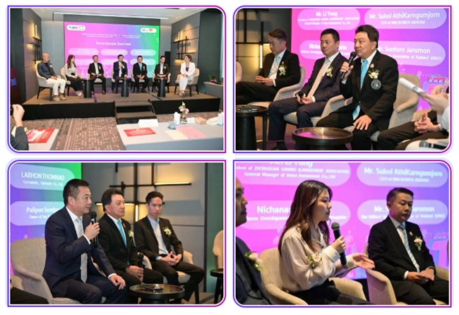 圓桌研討會上,中山市游戲游藝行業協會會長、廣東金馬游樂股份有限公司總經理李勇、泰國臺球協會會長Mr.Suntorn Jarumon、MACROMOS AIRSTAR首席執行官Mr.Sakol AthiKarnGumJorn、Solid enterprise業務發展主管Ms.Nichanan Tantasirin、Gabenate Co., Ltd.聯合創始人Mr.Labhon Thomnao、TON Praram3品牌創始人 Mr.Palipon Sombun等嘉賓圍繞“體育商業經濟助力下泰國旅游娛樂的未來”主題展開深度對話。各方觀點碰撞交融,為產業發展提供了兼具前瞻性與實操性的思路建議。