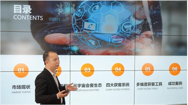 關(guān)于云展動力及鴻威元宇宙會客廳,鴻威集團(tuán)云展動力負(fù)責(zé)人陳良玉介紹道,云展動力精準(zhǔn)獲客平臺歷經(jīng)多年打磨,現(xiàn)已集合了數(shù)字孿生云展系統(tǒng)、大數(shù)據(jù)獲客系統(tǒng)、精準(zhǔn)邀約系統(tǒng)、客戶管理系統(tǒng),形成了有效的智能獲客生態(tài)。針對“幫助企業(yè)獲客”的核心問題,云展動力重磅推出了元宇宙會客廳,能夠完美復(fù)刻企業(yè)實(shí)景,讓精準(zhǔn)客戶不受時空限制,隨時隨地進(jìn)入云展廳參觀,完成逛展會、看產(chǎn)品、游產(chǎn)線等實(shí)時互動操作,助力參展企業(yè)實(shí)現(xiàn)高效獲客,為國際采購商尋求優(yōu)質(zhì)供應(yīng)服務(wù)商創(chuàng)造條件。